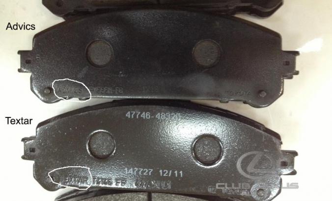 Иногда на Lexus производится 2 вида тормозных колодок. Одинаковые по размеру и форме, но отличаются номерами и ценой. Разница в фирме производителе колодок.